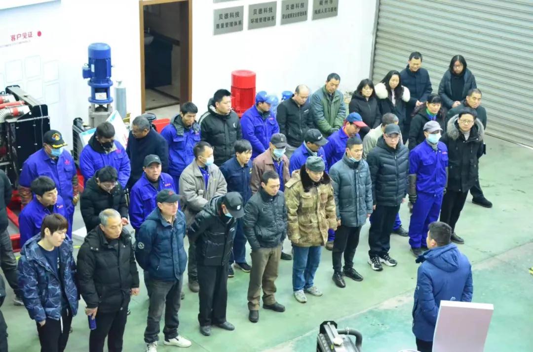 2月11日(正月十一),貝德科技集團在工廠舉辦了簡單而又隆重的開工儀式,公司副總經理舒雪飛發言,先向全體員工致以誠摯的新年祝福,并對大家提出了2022年的期盼和要求,動員各個崗位繼續努力,向前奮進。