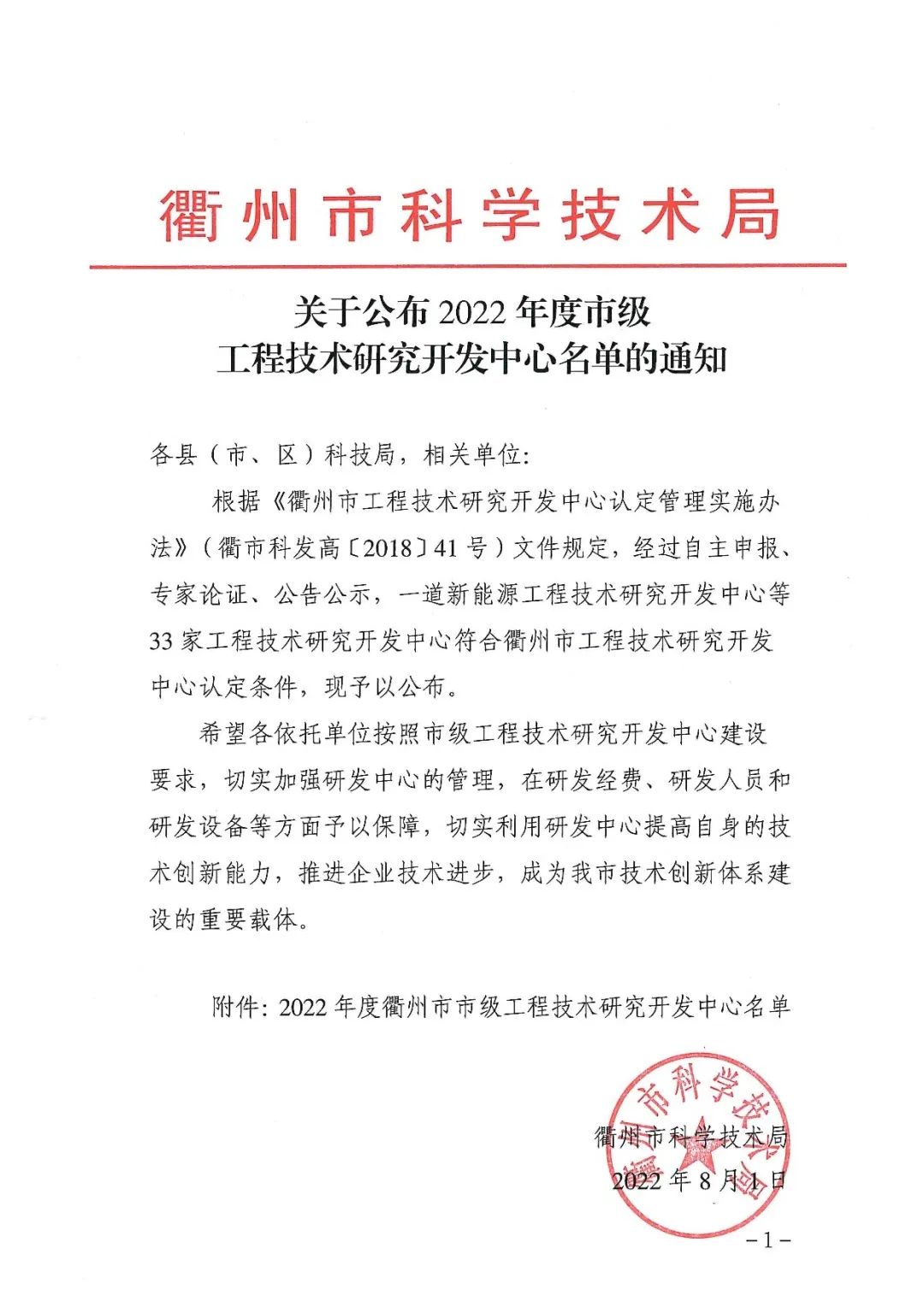 榜上有名丨貝德泵業市級工程技術研究開發中心進入衢州市市級工程技術研究開發中心名單