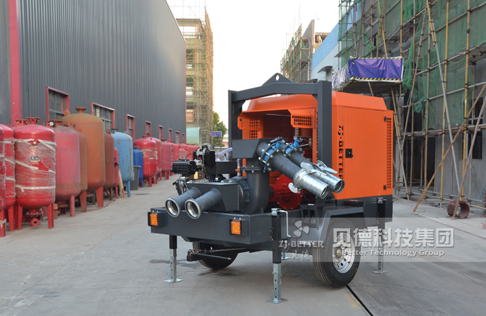 貝德應急排澇泵車,是拖車型、防雨型機組,可露天使用,移動方便,可滿足不同環境和不同場合的應用需求。泵車外接外置日用大油箱,輕松實現