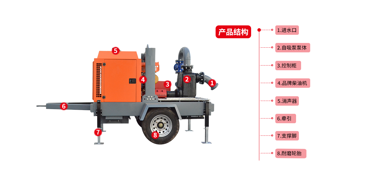移動自吸排水泵車將移動載體與整合發電機組和排水設備的防雨箱進行組合,成為專業使用的排水搶險移動泵站。適應于全天候的野外露天作業,具有整體性能穩定可靠、一體操作輕便實用、快速響應排水效率高、功能多樣組合便利、用途廣泛性價比高等特點,能很好的滿足戶外作業和城市防汛、農業抗旱、市政工程和應急排水的需要。移動自吸排水泵車是通過消化吸收潛水貫流泵技術的基礎上專為防洪搶險、抗旱排澇等特發險情而設計生產的。該泵在減輕重量、增加過流能力和可靠性等發面有所突破,單間設備重量不超過390kg,機動靈活,泵與電機共軸,結構緊湊,便于維修,可潛入水中運行。與傳統水泵相比,在快速、節能、環保等方面具有明顯優勢。